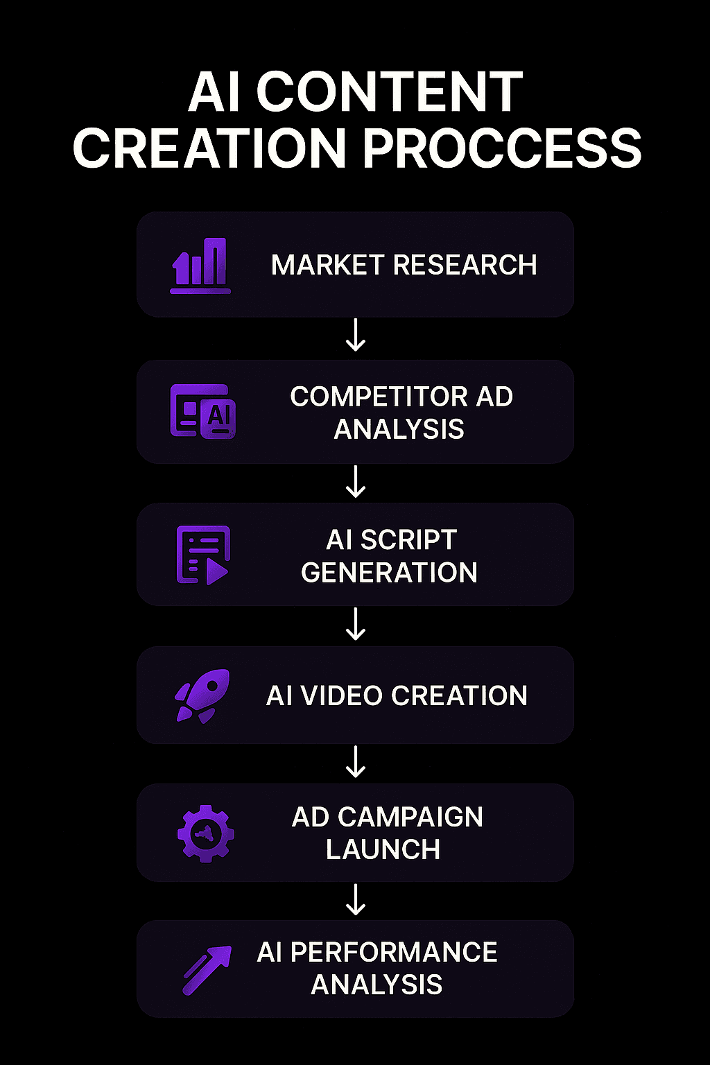 From market research and scriptwriting to video creation with AI avatars and ad optimization, the system handles every step producing ads, visuals, and copy at scale.