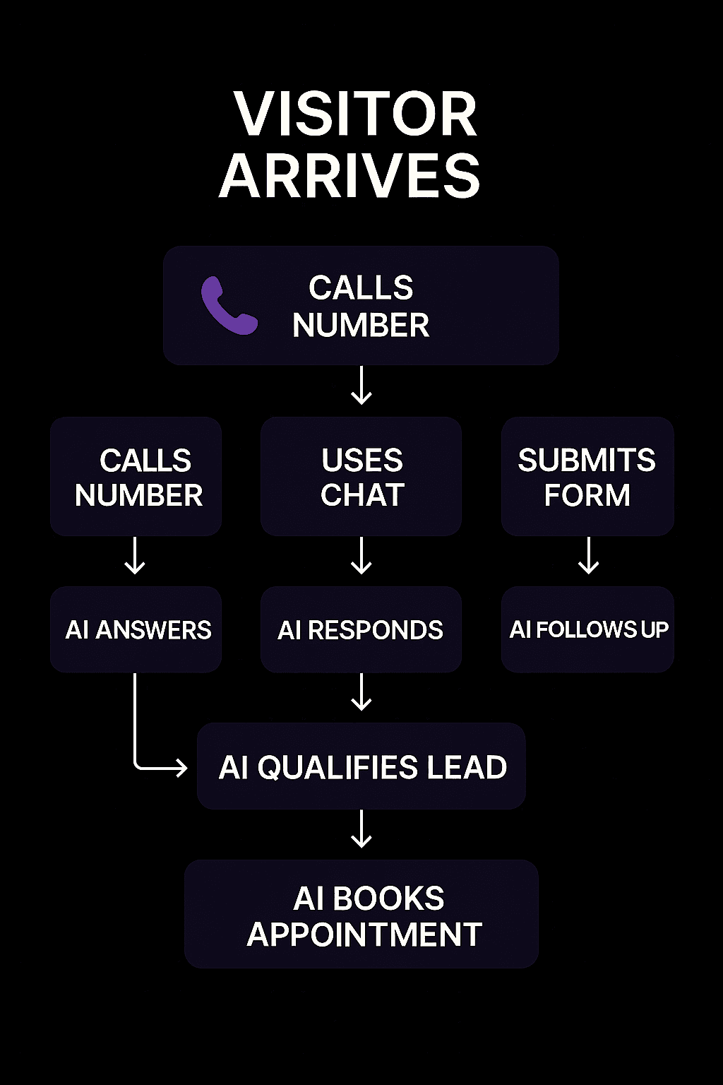Instant AI-Powered Engagement: Every website visitor receives immediate attention through AI tools like chat widgets, phone answering, lead follow-ups, and calendar booking—ensuring no lead slips away unnoticed.